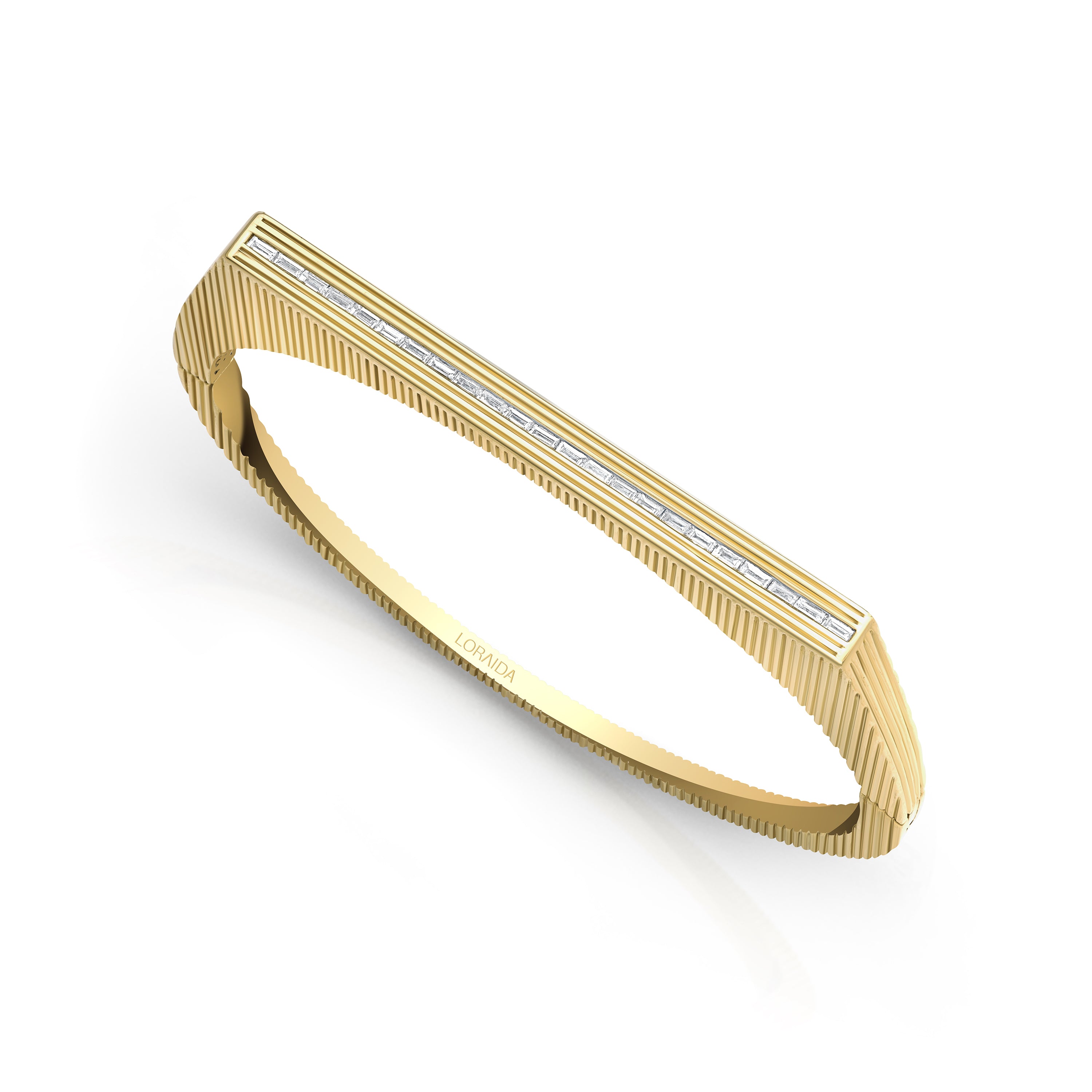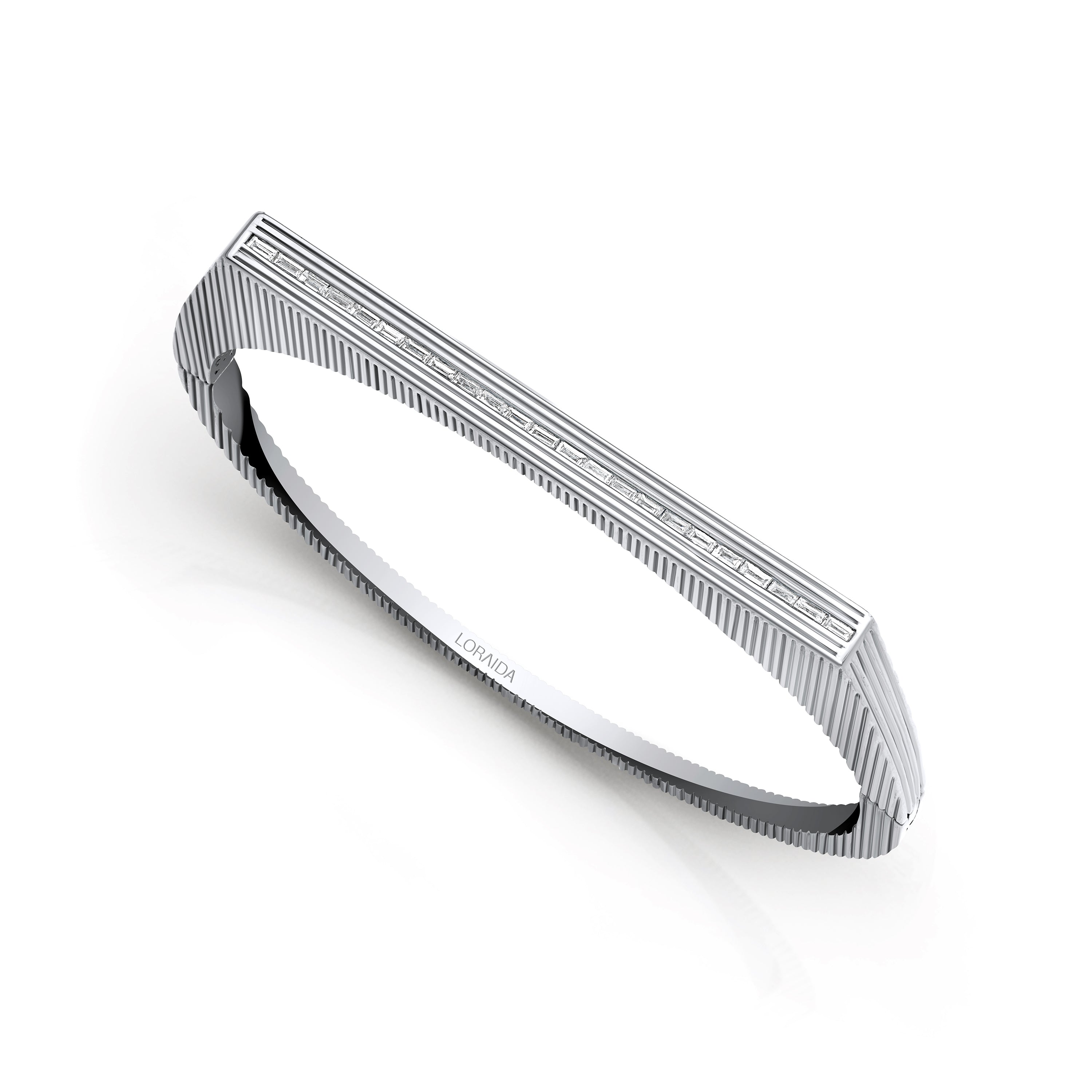 A bold double-band form elevated by rows of baguette diamonds, designed to curve with strength and precision.
