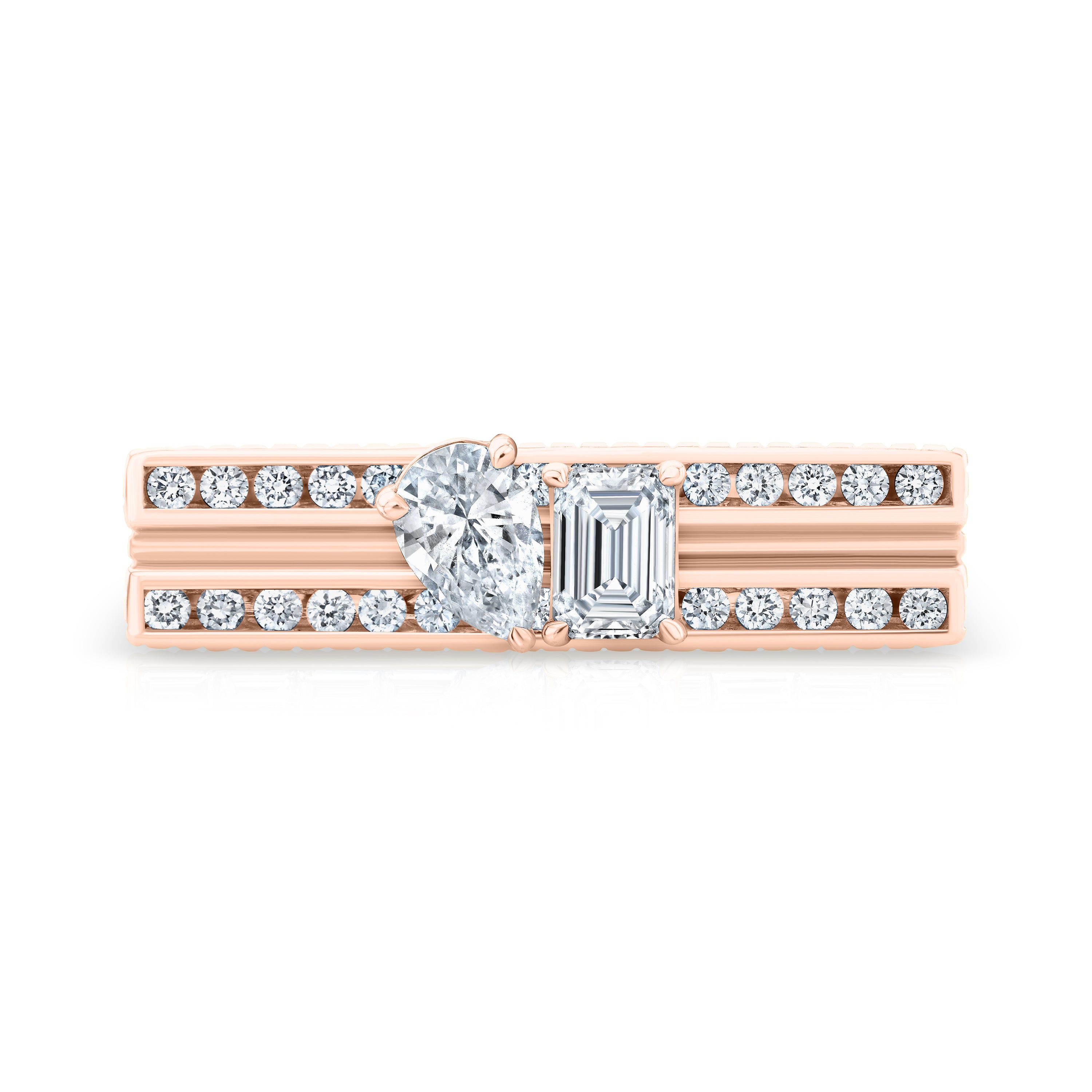 Blade Emerald & Pear Round Pave Ring